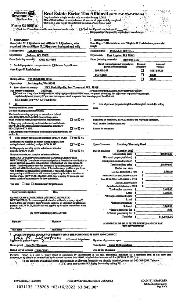 | 1 | 09/29/2022 | SWD | Statutory Warranty Deed | DABOB FOUNDATION | DABOB CORPORATION 1 INC | | | | 139977 | |