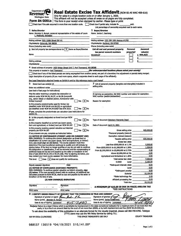 | 2 | 07/13/2021 | PRD | Personal Representatives Deed | | | | | | 137195 | |