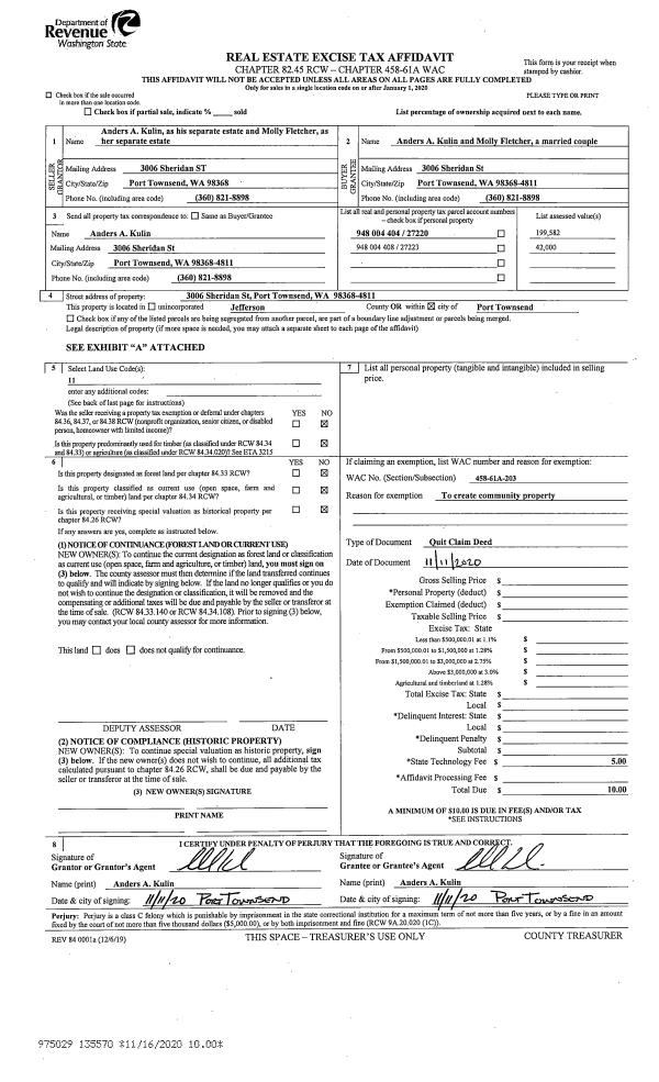 | Mailing Address: | 310 HAZEL POINT RD QUILCENE, WA 98376-9617 | % Ownership: | 100.0000000000% |