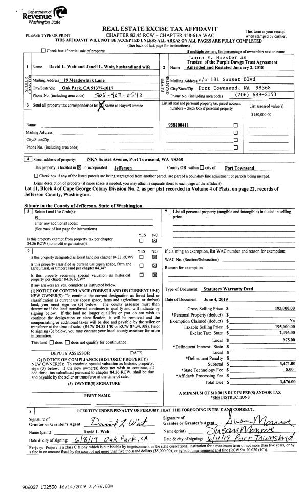 | 1 | 08/15/2014 | SWD | Statutory Warranty Deed | ROBERT W STAFFORD | DAVID & DIANE BOWE | | | $7,500.00 | 121837 | |