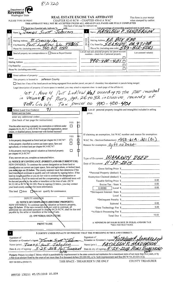 | 2 | 02/20/2020 | SWD | Statutory Warranty Deed | ERVIN H WASSER | SARA C LINWICK | | | $27,000.00 | 134070 | |