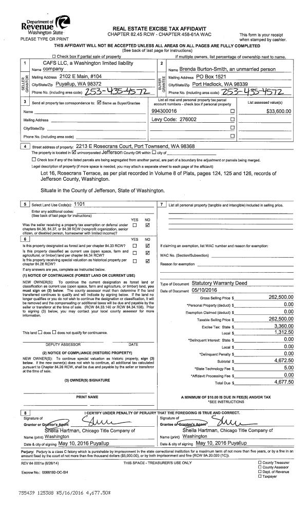 | Mailing Address: | 91 MAPLE ST QUILCENE, WA 98376-9633 | % Ownership: | 100.0000000000% |