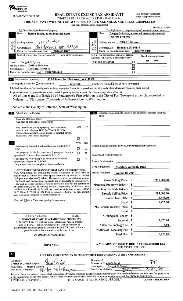 | 3 | 03/17/2017 | SWD | Statutory Warranty Deed | GLENN ANDREWS TRSTEE | SHERYL J WOLOVER | | | $60,000.00 | 127349 | |