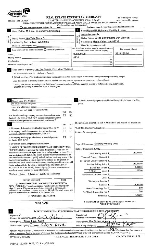 | 2 | 06/19/1996 | SWD | Statutory Warranty Deed | CEDERGREN, WILLIAM/DIANE | STAVHEIM, KENNETH/KELLY, JAMES | 0 | 0 | $7,000.00 | 97621 | 0 |