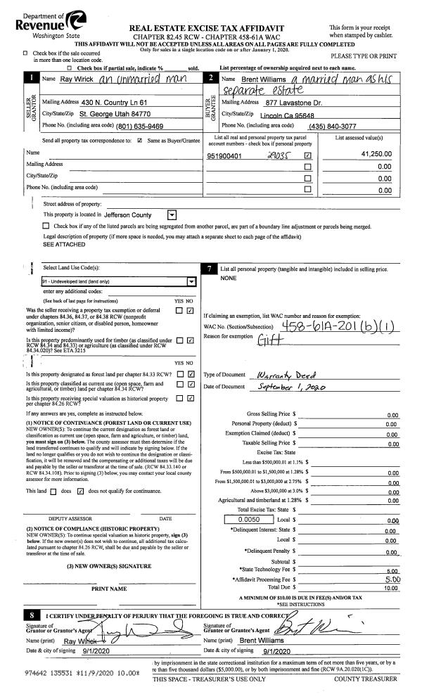 | 3 | 01/02/2004 | SWD | Statutory Warranty Deed | WALSTEAD TRUST, CHARLES A | WALSTEAD, ED/BECKY | 0 | 0 | $0.00 | 102658 | 0 |