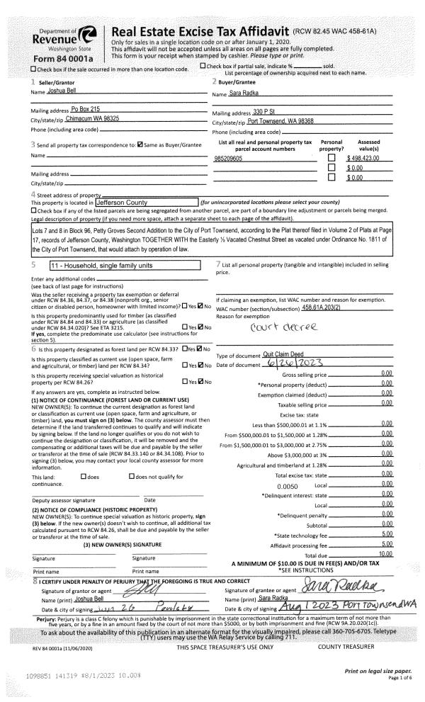 | 1 | 2267-1515F | Low Bank Wtrfrt on Dabob Bay/Hood Canal | 0.0000 | 0.00 | 0.00 | 0.00 | 0.00 | $124,200 | $0 |