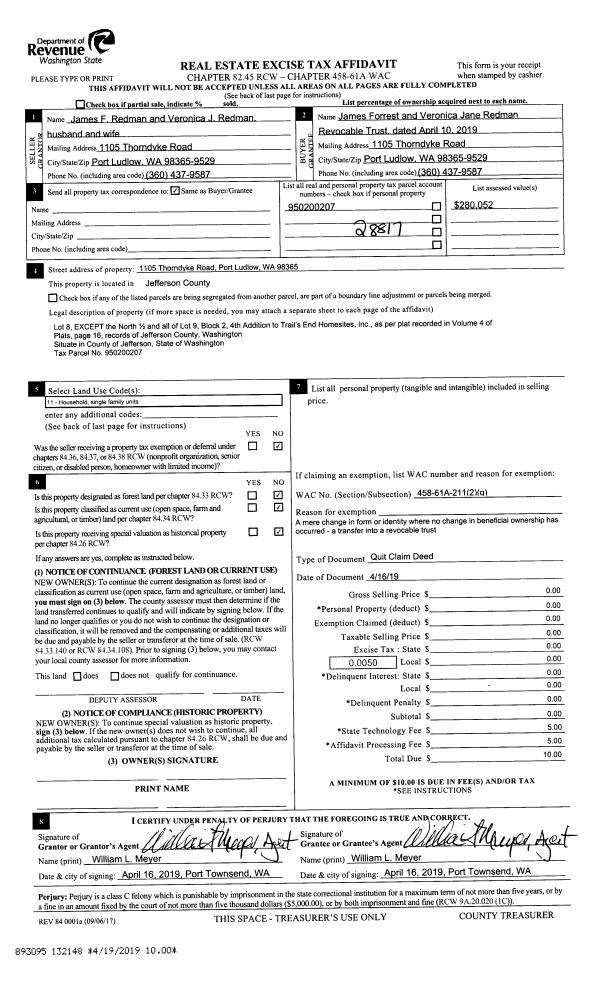 | 1 | 05/18/2009 | SWD | Statutory Warranty Deed | SCHMIDT, TIMOTHY/SUSAN | MCCONNELL, JAMES HARMON | | | $125,000.00 | 112888 | 0 |
