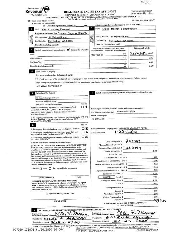 | 1 | 11/30/2022 | SWD | Statutory Warranty Deed | LILLIAN CANTERBURY | WILLIAM R JOHANSEN | | | | 140228 | |