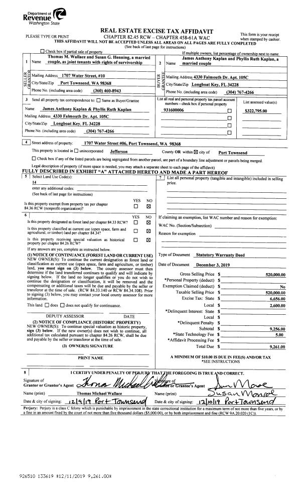 | 1 | 1310-1515F | Low to Medium Bank Wtrfrt on Hood Canal | 0.0000 | 0.00 | 0.00 | 0.00 | 0.00 | $56,063 | $0 |