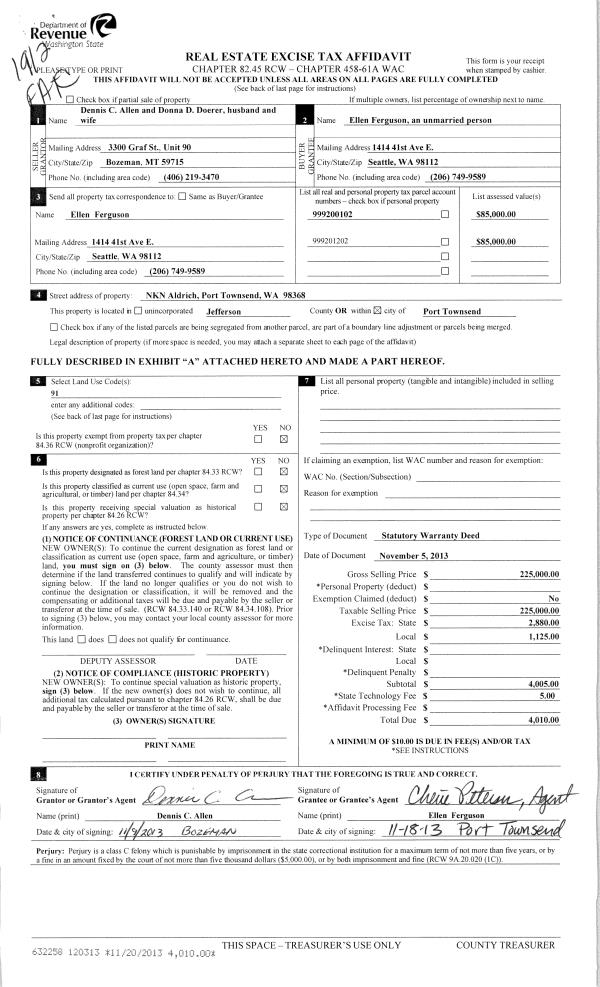| 5 | 08/02/2013 | SWD | Statutory Warranty Deed | | | | | | 120093 | |