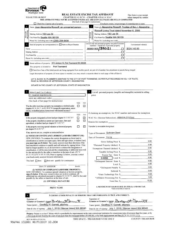 | 3 | 10/05/2009 | WD | Warranty Deed | HILLIER, WILLIAM T SUCCES | SECURITY STATE BANK, A WASHING | 0 | 0 | $450,000.00 | 113496 | 0 |