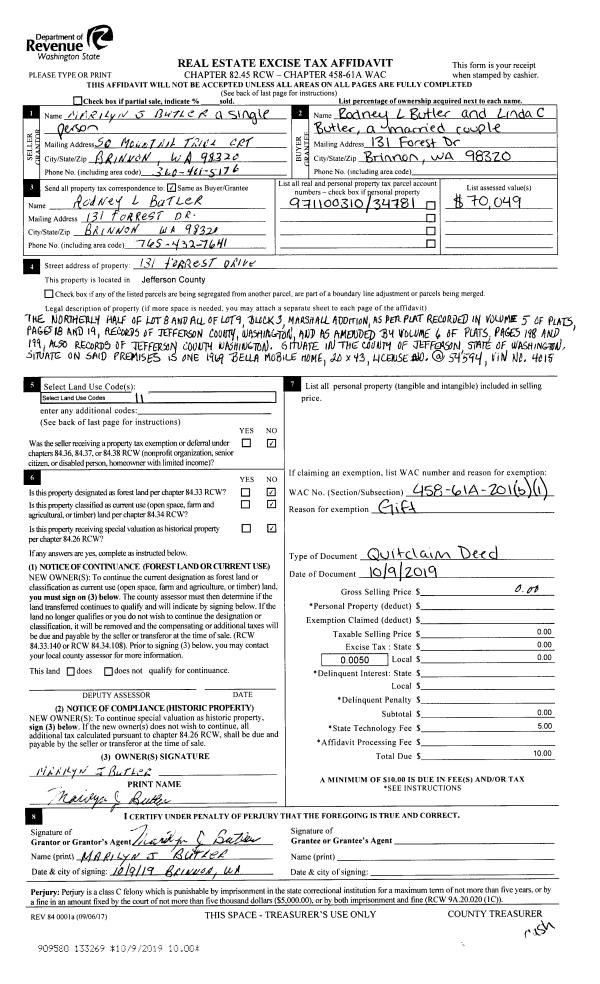 | 6 | 10/13/1998 | QCD | Quit Claim Deed | BREDA, THOMAS F | BREDA, THOMAS F/TRUST | 0 | 0 | $0.00 | 85492 | 0 |