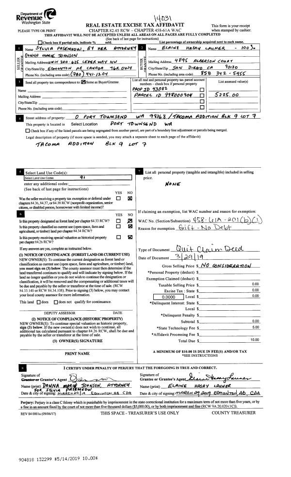 | 3 | 1335-1515F | Low Bank Wtrfrt Jackson Cove/Dabob Bay | 0.0000 | 0.00 | 0.00 | 0.00 | 0.00 | $212,036 | $0 |