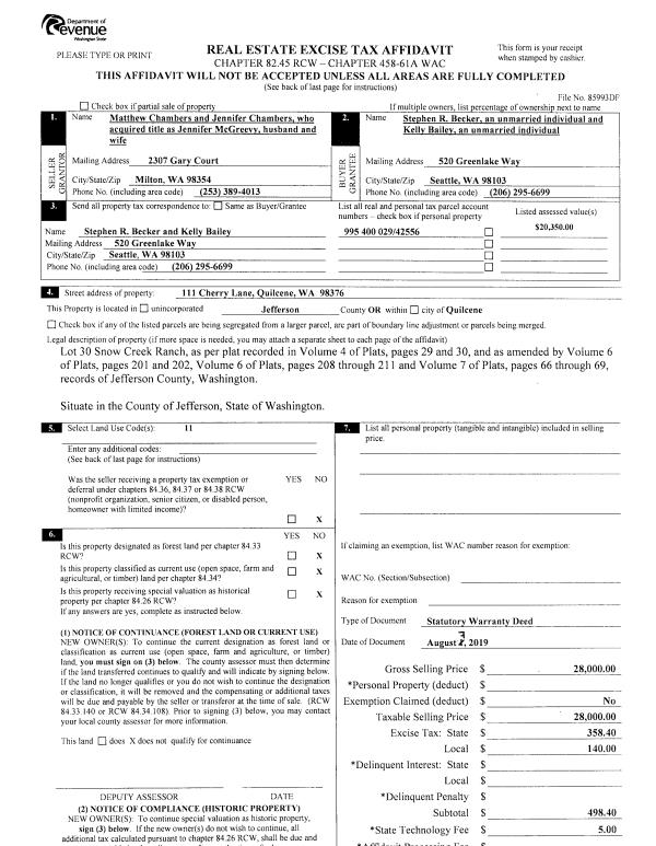 | 1 | 03/26/2015 | SWD | Statutory Warranty Deed | HERBERT WALUM | PETER J & CONSTANT S EDWARDS | | | $105,000.00 | 122965 | |