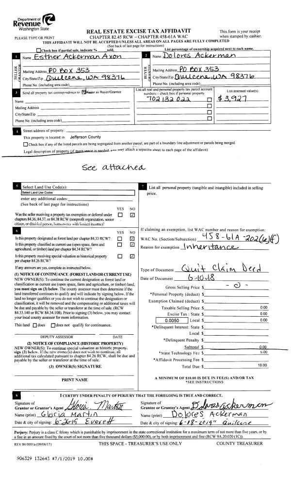 | 1 | 06/11/1999 | SWD | Statutory Warranty Deed | KNUDSEN, DONALD H/EST | KUKLOK, DENNIS | 0 | 0 | $0.00 | 87144 | 0 |