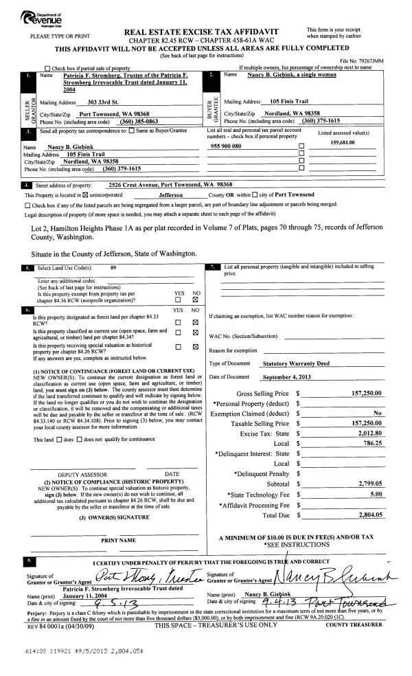 | 1 | 02/04/2015 | EASE | Assignment of Easement | | | | | | 122656 | |