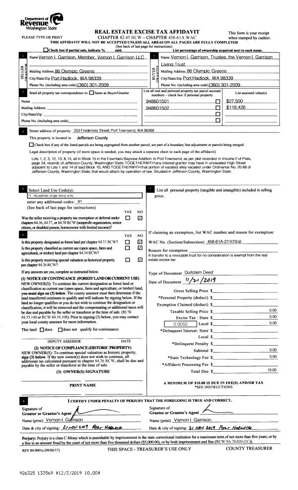| Mailing Address: | VRENI VON ARX WATT TRUSTE WATT REV LIVING TRUST 2707 32ND AVE S SEATTLE, WA 98144-5541 | % Ownership: | 100.0000000000% |