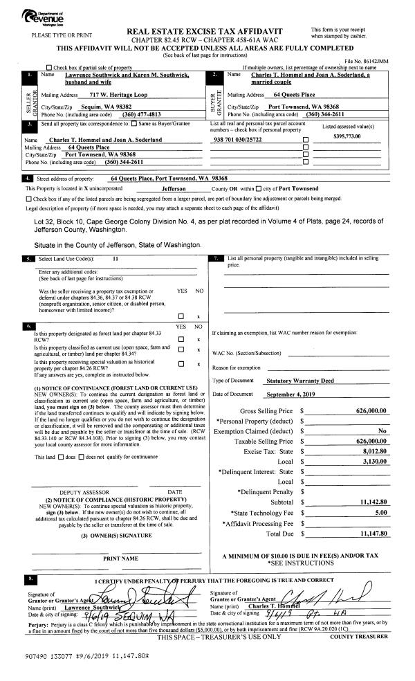 | 3 | 10/26/2005 | SWD | Statutory Warranty Deed | COONE, RICHARD/UERLA | CLOUSER, LARRY/KAREN WOOD | 0 | 0 | $50,000.00 | 105181 | 0 |