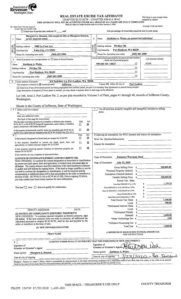 | 2 | 08/05/2005 | SWD | Statutory Warranty Deed | JENKINS, R R | BECK, KEITH/FAY C | 0 | 0 | $160,000.00 | 104453 | 0 |