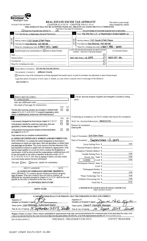 | Mailing Address: | CATHERINE BEACH 62 SPRINGER LN BRINNON, WA 98320-9551 | % Ownership: | 100.0000000000% |