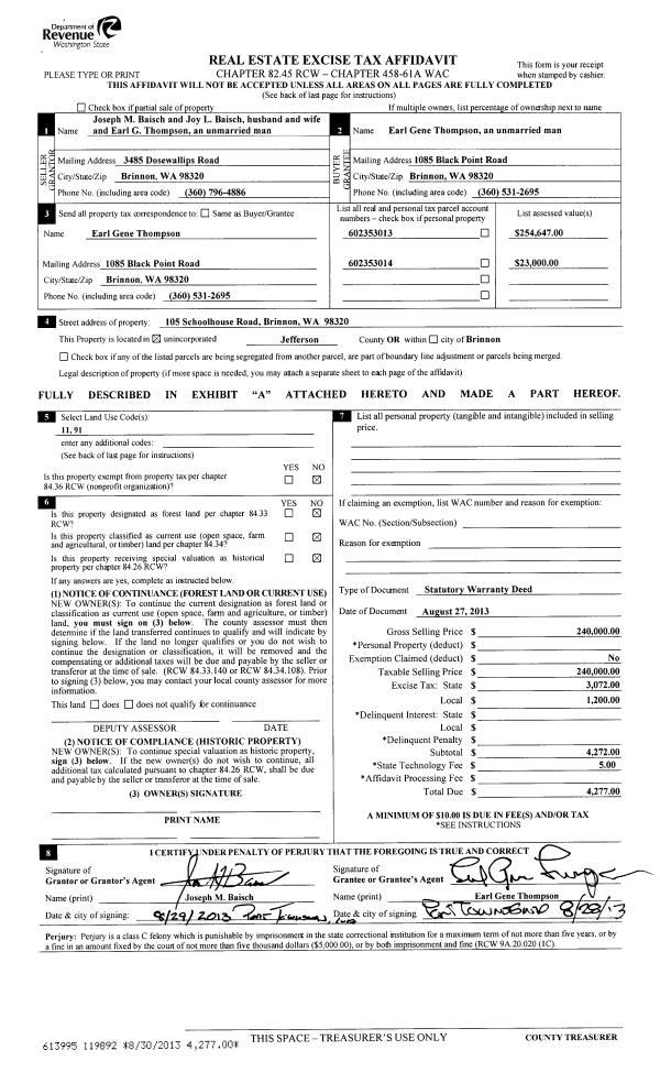 | 3 | 08/02/2013 | SWD | Statutory Warranty Deed | | | | | | 120093 | |