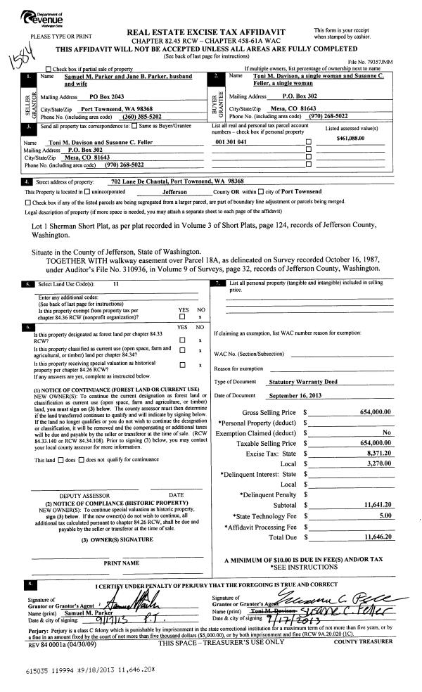 | 2 | 08/04/2013 | BSD | Bargain and Sale Deed | RAYONIER TMBLND OPER CO L P | TIMBERLANDS HOLDING COMPANY WASHINGTON INC | | | | 119758 | |