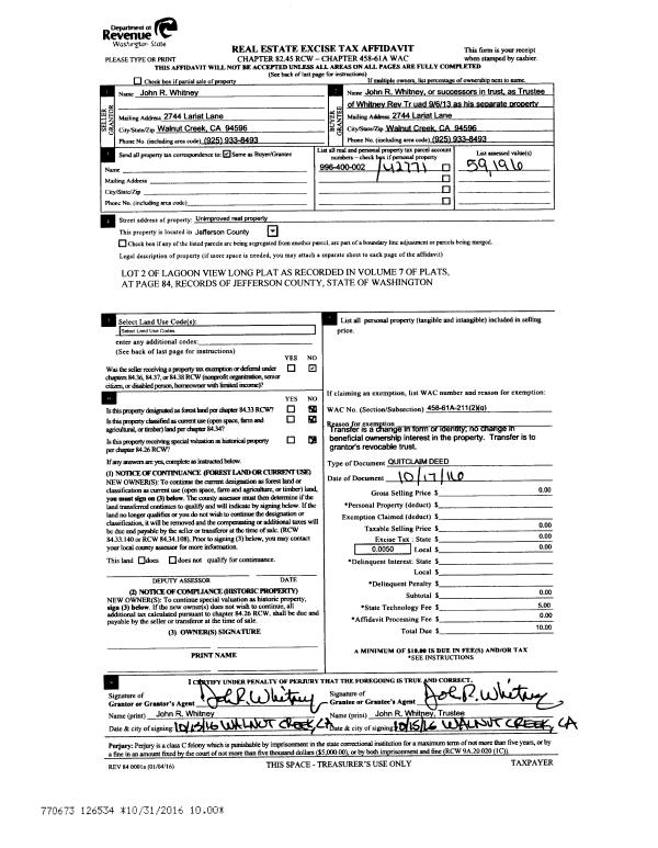 | 2 | 05/03/2010 | BSD | Bargain and Sale Deed | WESTERN RIVERS CONSERVANC | HOH RIVER TRUST | | | $225,000.00 | 114364 | 0 |