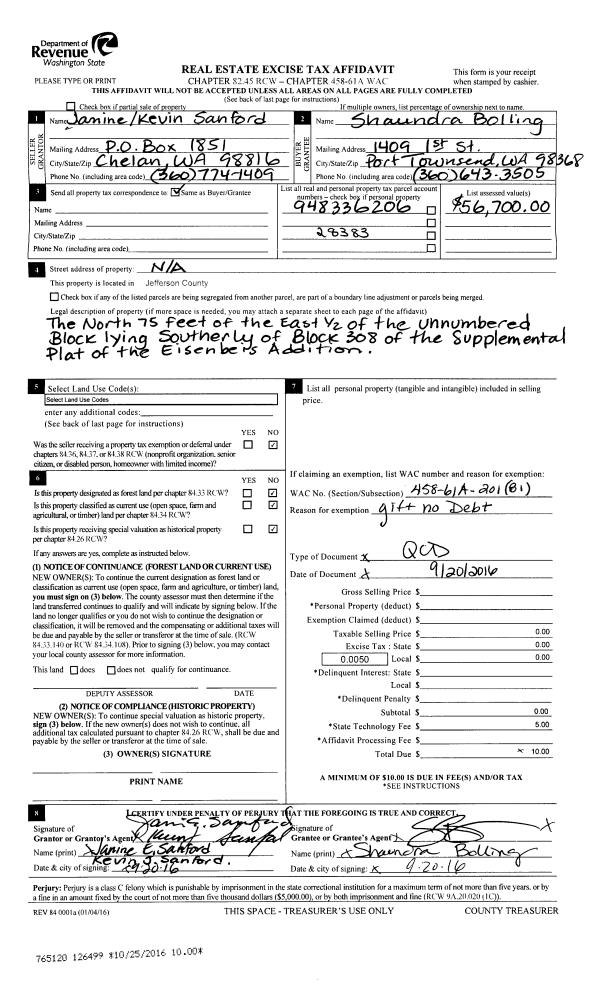 | 2 | 09/09/2009 | WD | Warranty Deed | WESTERN RIVERS CONSERVANC | HOH RIVER TRUST A WA NON PROFI | 0 | 0 | $0.00 | 113446 | 0 |