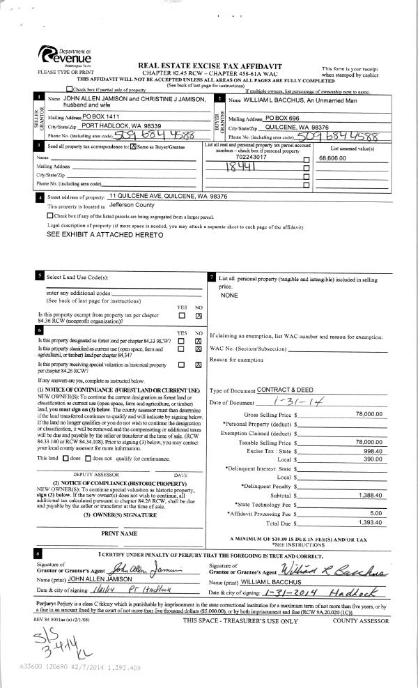 | 2 | 08/04/2013 | BSD | Bargain and Sale Deed | RAYONIER TMBLND OPER CO L P | TIMBERLANDS HOLDING COMPANY WASHINGTON INC | | | | 119758 | |