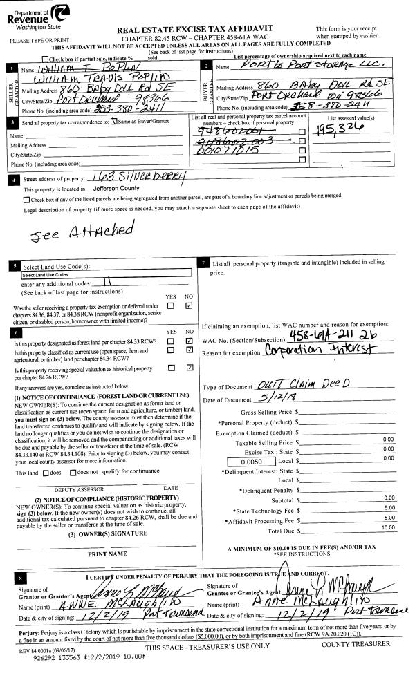 | 1 | 08/31/2020 | SWD | Statutory Warranty Deed | BRADLY D CARSTENSEN | STEVEN E & SHARON M SPEIRS | | | $75,000.00 | 135000 | |