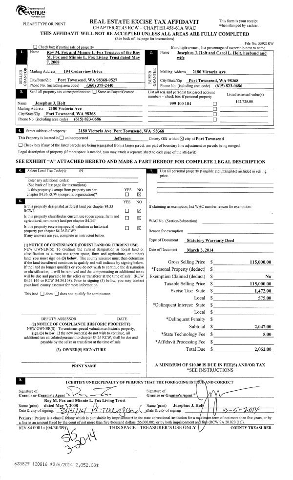 | Mailing Address: | 1930 5TH ST MARYSVILLE, WA 98270-4708 | % Ownership: | 100.0000000000% |