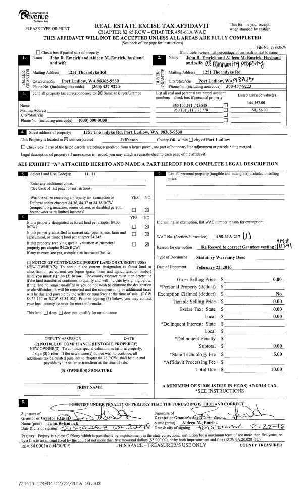 | 2 | 12/12/2012 | EASE | Assignment of Easement | POPE RESOURCES | PUGET SOUND ENERGY INC | | | | 118482 | |