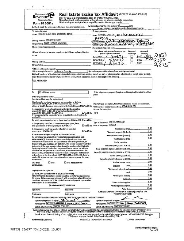 | 1 | 12/11/2020 | SWD | Statutory Warranty Deed | LINDA R MADEN | LANCE & BARBARA FAY | | | $180,000.00 | 135794 | |