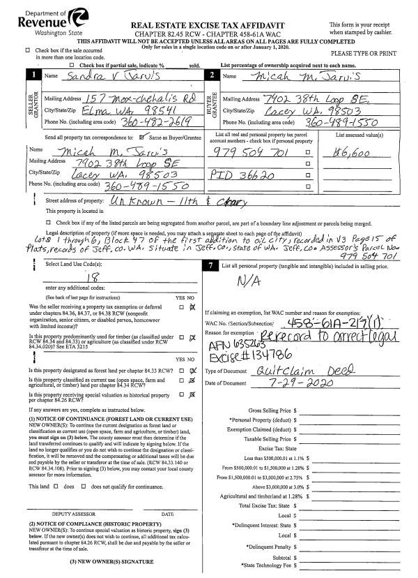 | 8 | 12/18/2000 | SWD | Statutory Warranty Deed | EDWARDS, FRED C & KE | PETERSON, MARK & MARCIA | 0 | 0 | $35,000.00 | 91279 | 0 |