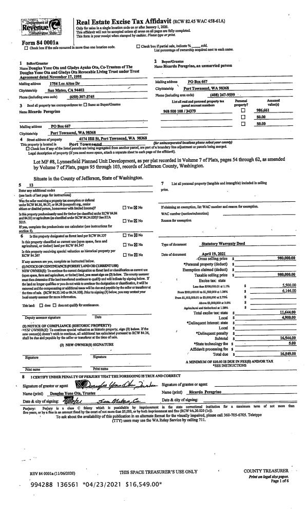| Mailing Address: | 11971 CENTER RD QUILCENE, WA 98376-8574 | % Ownership: | 100.0000000000% |