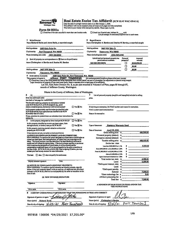 | 1 | 03/02/2022 | SWD | Statutory Warranty Deed | EARL B COONE | MICHELE & DANIEL RAMANO | | | $190,000.00 | 138657 | |