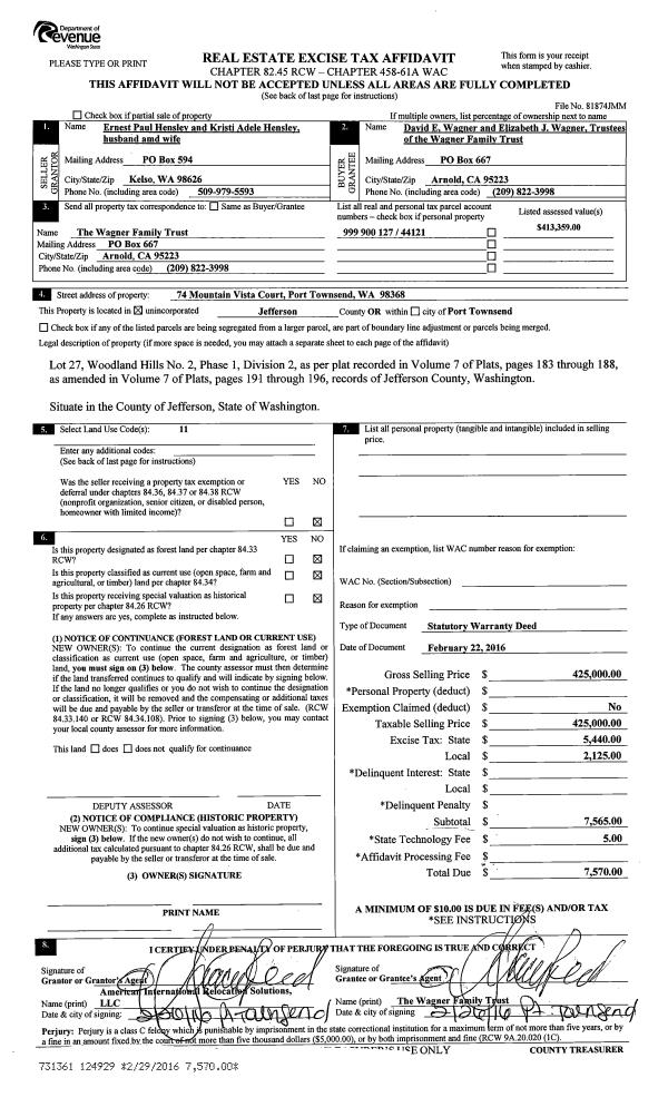 | Mailing Address: | JENNIFER L DROP 42 E TOANDOS LN QUILCENE, WA 98376-9697 | % Ownership: | 100.0000000000% |