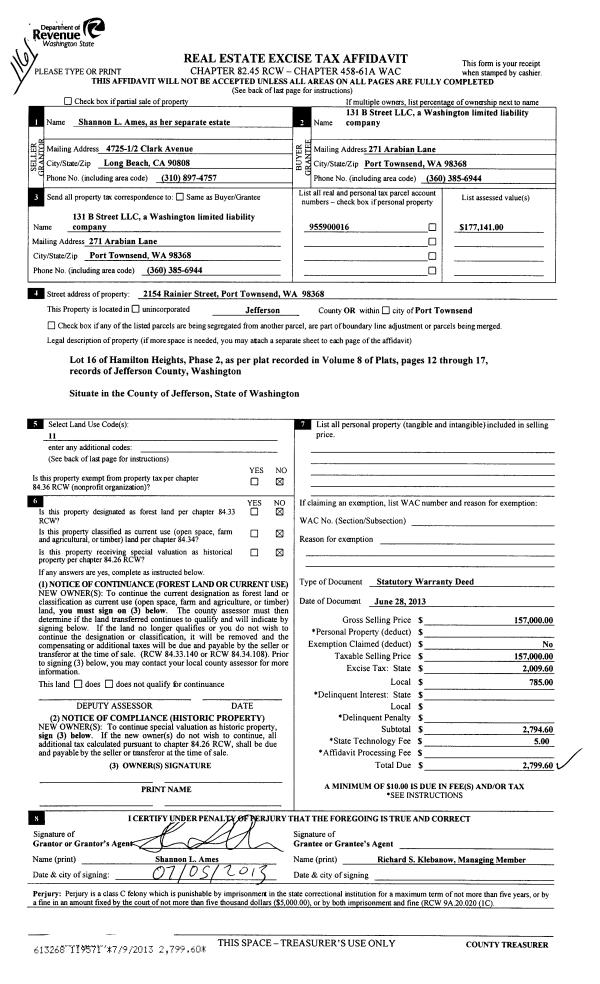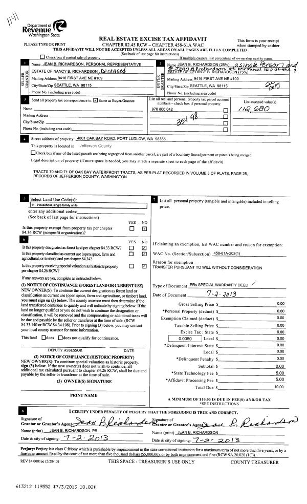 | 1 | 01/16/2015 | SWD | Statutory Warranty Deed | KENNETH SPENCER | STATE OF WASHINGTON-DNR | | | $175,000.00 | 122609 | |