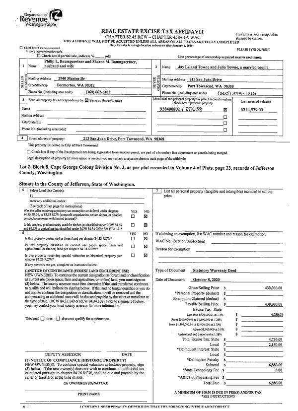| 1 | 2340-1517F | Mud Flat Waterfront on Quilcene Bay | 0.0000 | 0.00 | 0.00 | 0.00 | 0.00 | $181,125 | $0 |
