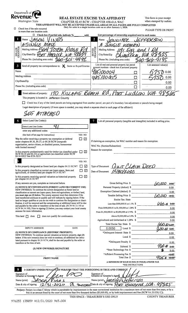 | 4 | 07/08/2005 | SWD | Statutory Warranty Deed | MERKLINGHAUS, ALLISON KAT | PHILLIPS, GARY & MARI | | | $110,000.00 | 104154 | 0 |