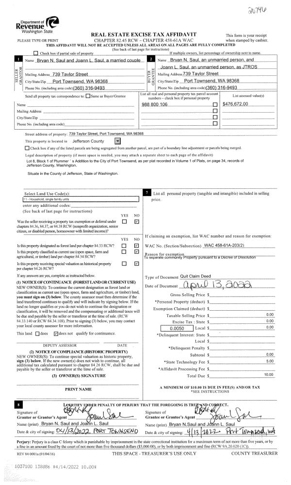 | 1 | 04/24/2025 | CONS EASE | CONSERVATION EASEMENT | NEAL KOBLITZ | JEFFERSON LAND TRUST | | RE-RCD | | 144550 | AF#672308 |