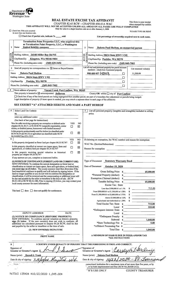 | 1 | 2370-1533F | High Bank Wtrfrt W/Average Access/Topo/Utility | 0.0000 | 0.00 | 0.00 | 0.00 | 0.00 | $91,080 | $0 |