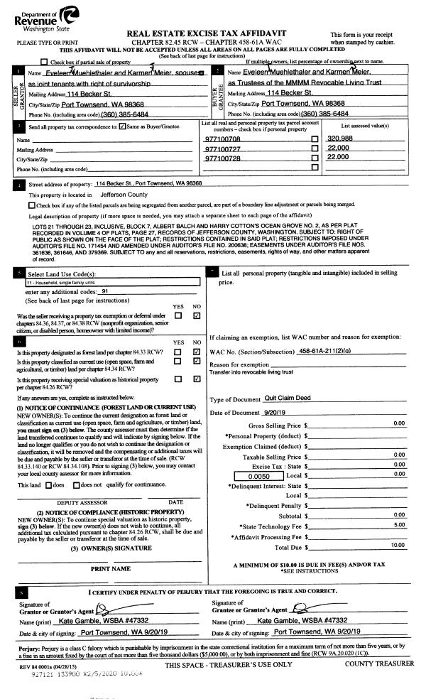 | 2 | 12/06/2017 | QCD | Quit Claim Deed | JANE DAVID | JANE & GERALD DAVID REVOCABLE LIV TRUST | | | | 129160 | |