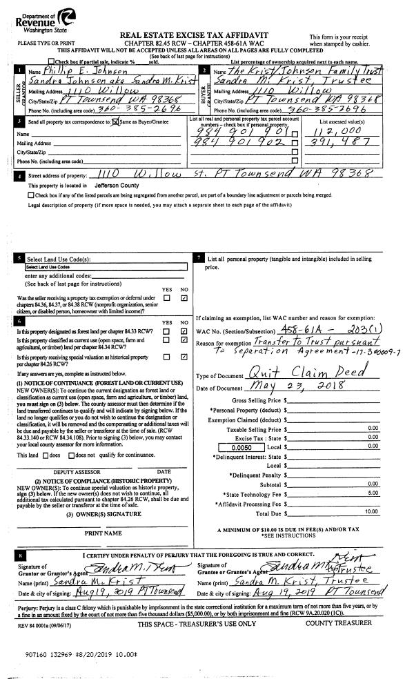 | Mailing Address: | ANN M KITTREDGE TRUSTEE PO BOX 763 QUILCENE, WA 98376-0763 | % Ownership: | 100.0000000000% |