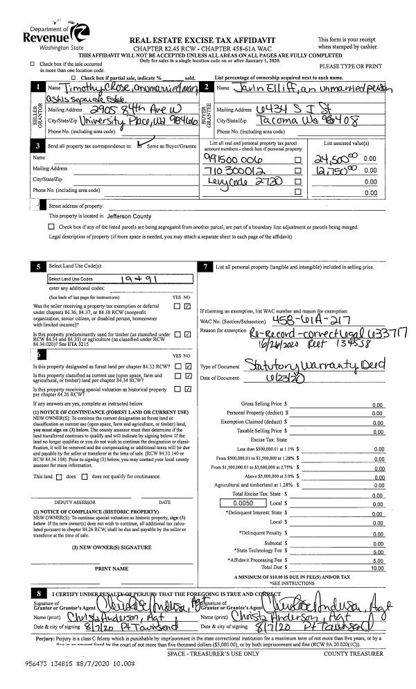 | 4 | 05/06/2005 | SWD | Statutory Warranty Deed | GUSTAVSON, GLENN O/BEVERL | VANDEWGHE, ROBERTUS/JACOBA | | | $59,000.00 | 103471 | 0 |