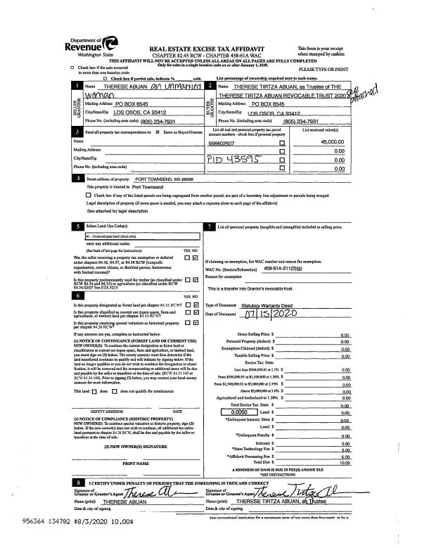 | Mailing Address: | DANELL I TOBEY 23114 39TH AVE W BRIER, WA 98036-8265 | % Ownership: | 100.0000000000% |