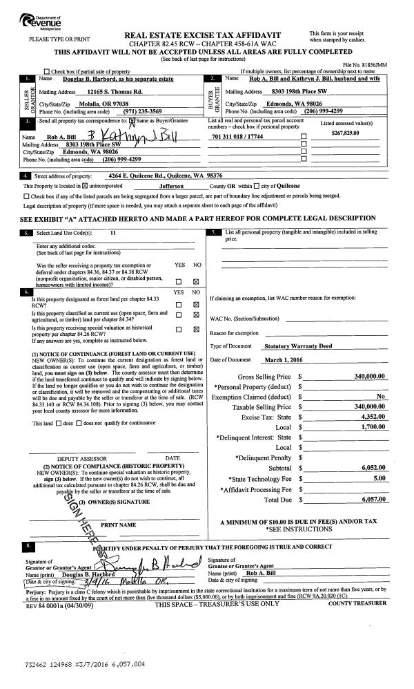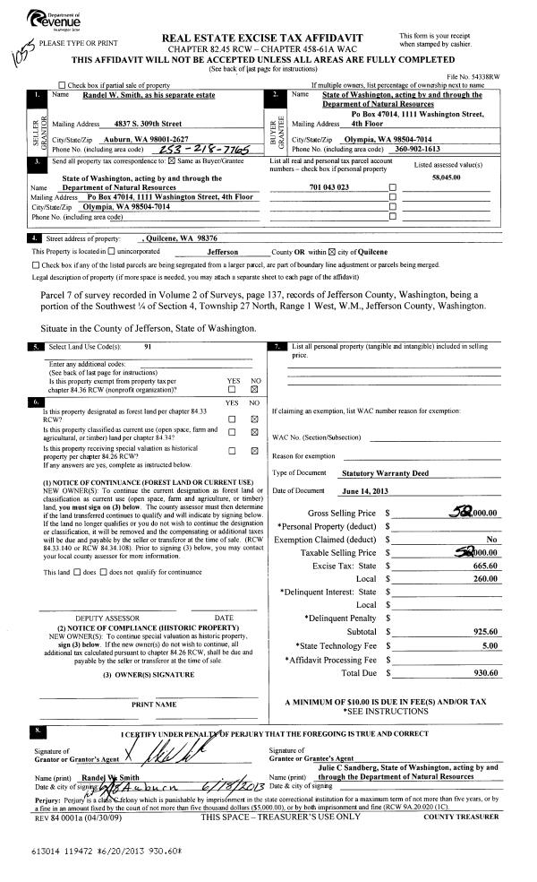 | 2 | 2350-1515F | Low Bank Waterfront along Dabob Bay | 0.0000 | 0.00 | 0.00 | 0.00 | 0.00 | $15,111 | $0 |