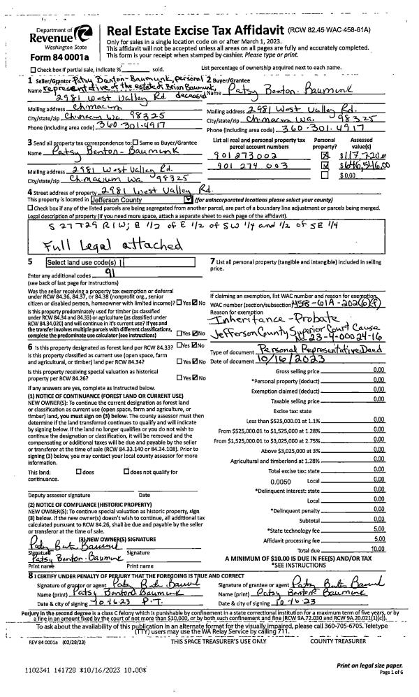 | 1 | 2350-1515F | Low Bank Waterfront along Dabob Bay | 0.0000 | 0.00 | 0.00 | 0.00 | 0.00 | $264,500 | $0 |