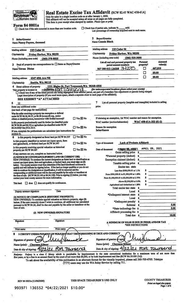 | Mailing Address: | DIANE R SASSE' 12004 73RD PL NE LAKE STEVENS, WA 98258-9083 | % Ownership: | 100.0000000000% |