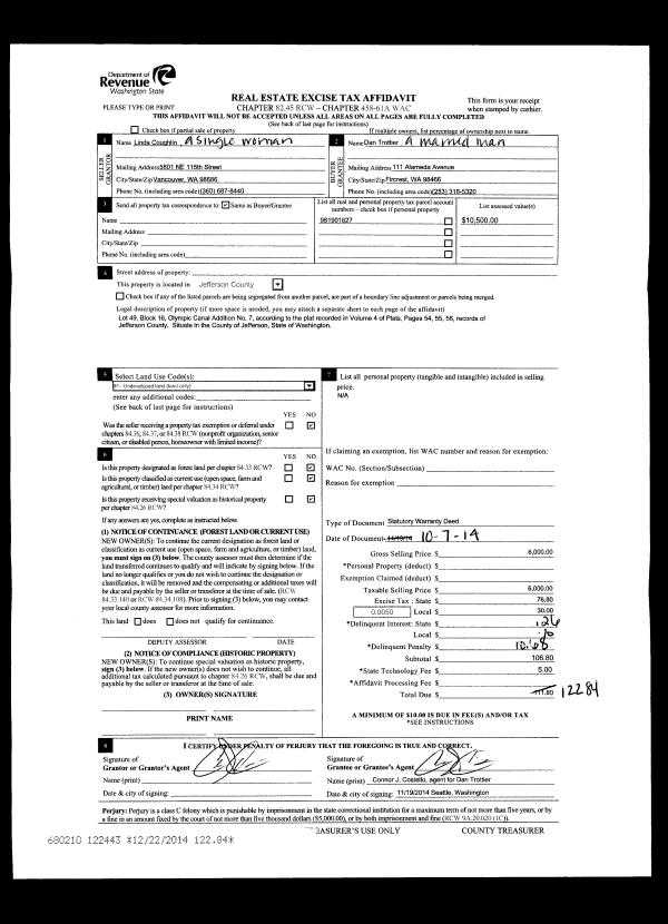 | 4 | 01/06/2016 | SWD | Statutory Warranty Deed | LINDA J CUPP | BONNIE L FRITZ | | | $155,000.00 | 124696 | |